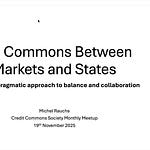 Once a month, the CCS hosts an online gathering where practitioners, researchers, and organisers explore different aspects of commons-oriented monetary and financial systems. The format is intentionally simple: a short reflection or guest presentation to open the space, followed by questions, shared contributions, and an open, interactive conversation. Rather than polished lectures, these sessions are chances to think together, compare experiences, and make sense of emerging practices across the wider ecosystem of credit clearing, mutual credit, and community exchange systems.